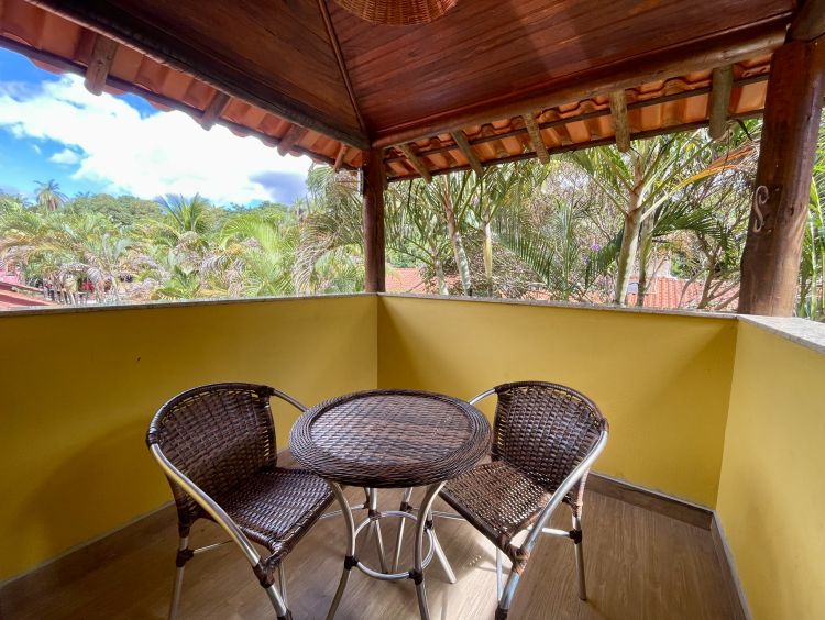 Quarto completo, com TV LCD, frigobar, closet para malas, banheiro com Box Blindex,Ar Condicionado , cama Box com colchão de espuma, varanda privativa , vista para o jardim,